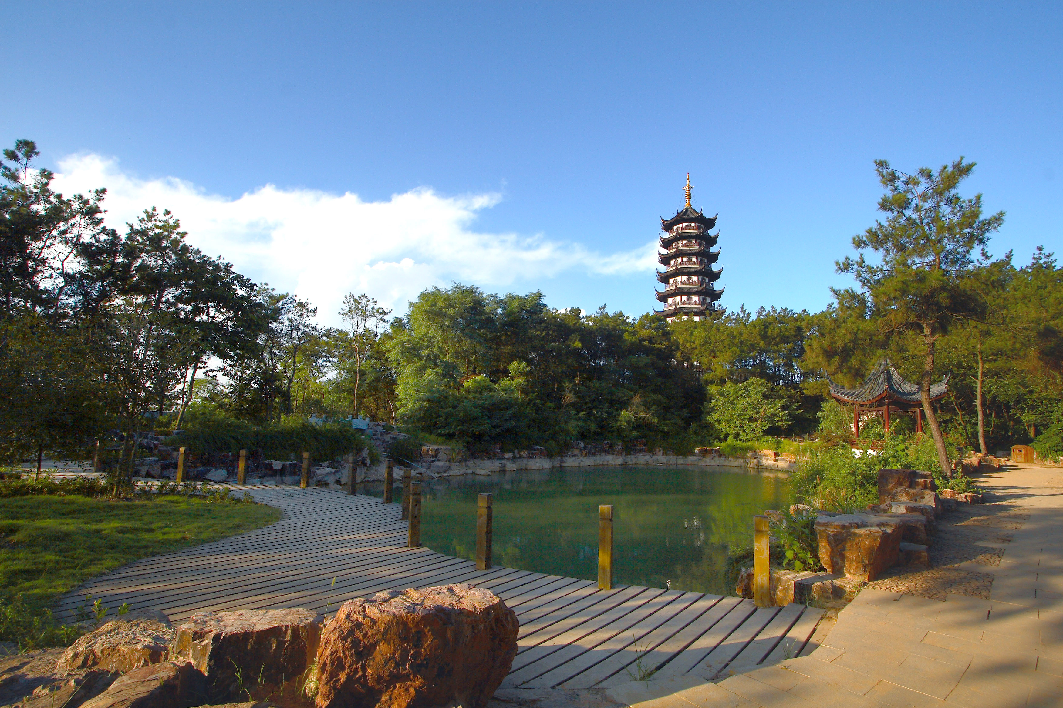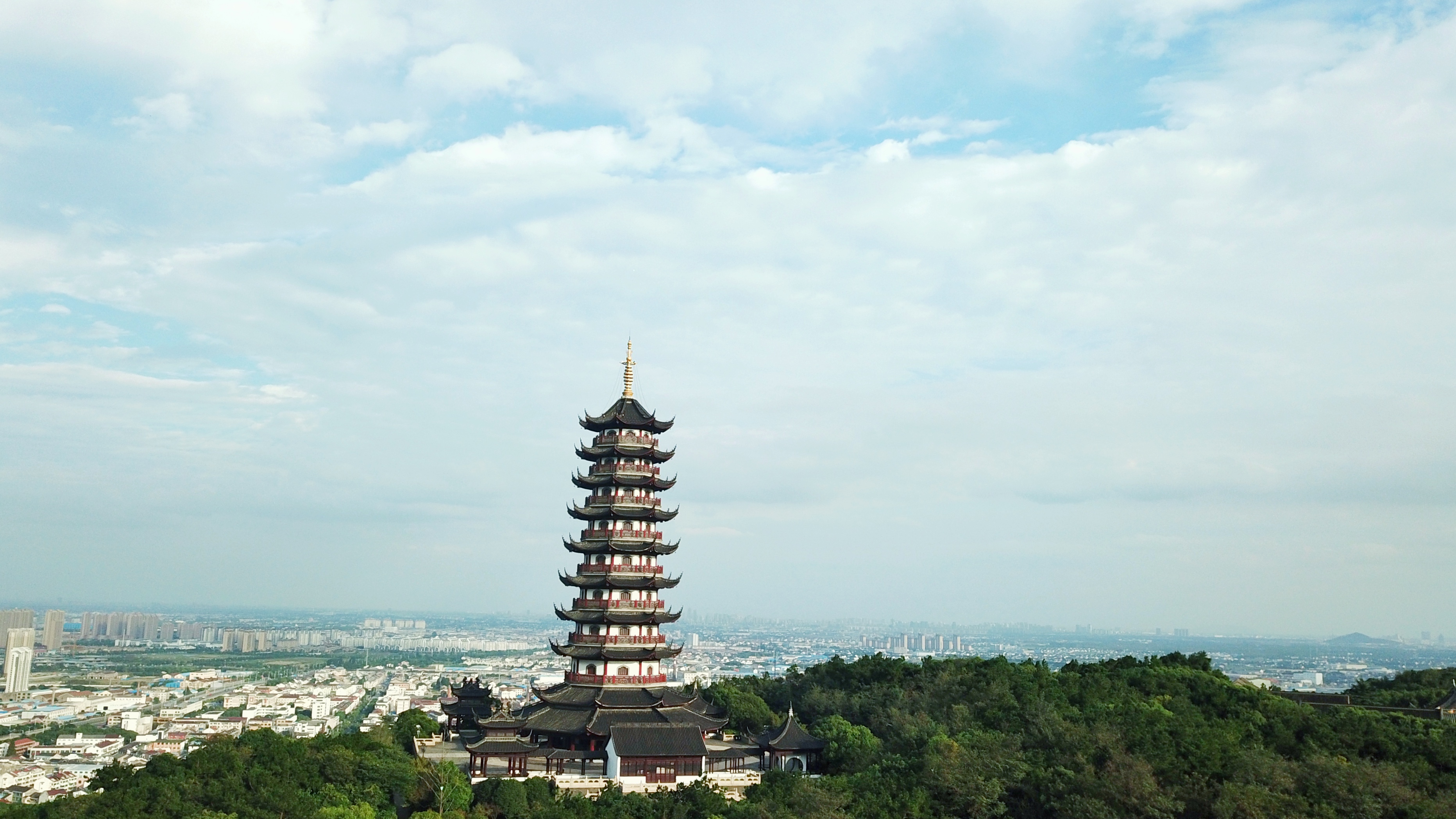 2005年6月8日奠基,2006年6月底竣工。塔身飞檐翘角,金色塔刹,八面九级,塔檐高49.8米,塔顶高64.8米,为明清楼阁式江南宝塔,望去有琼楼玉宇之感。登塔可聆听八面来风,而江南秀色尽收眼底。