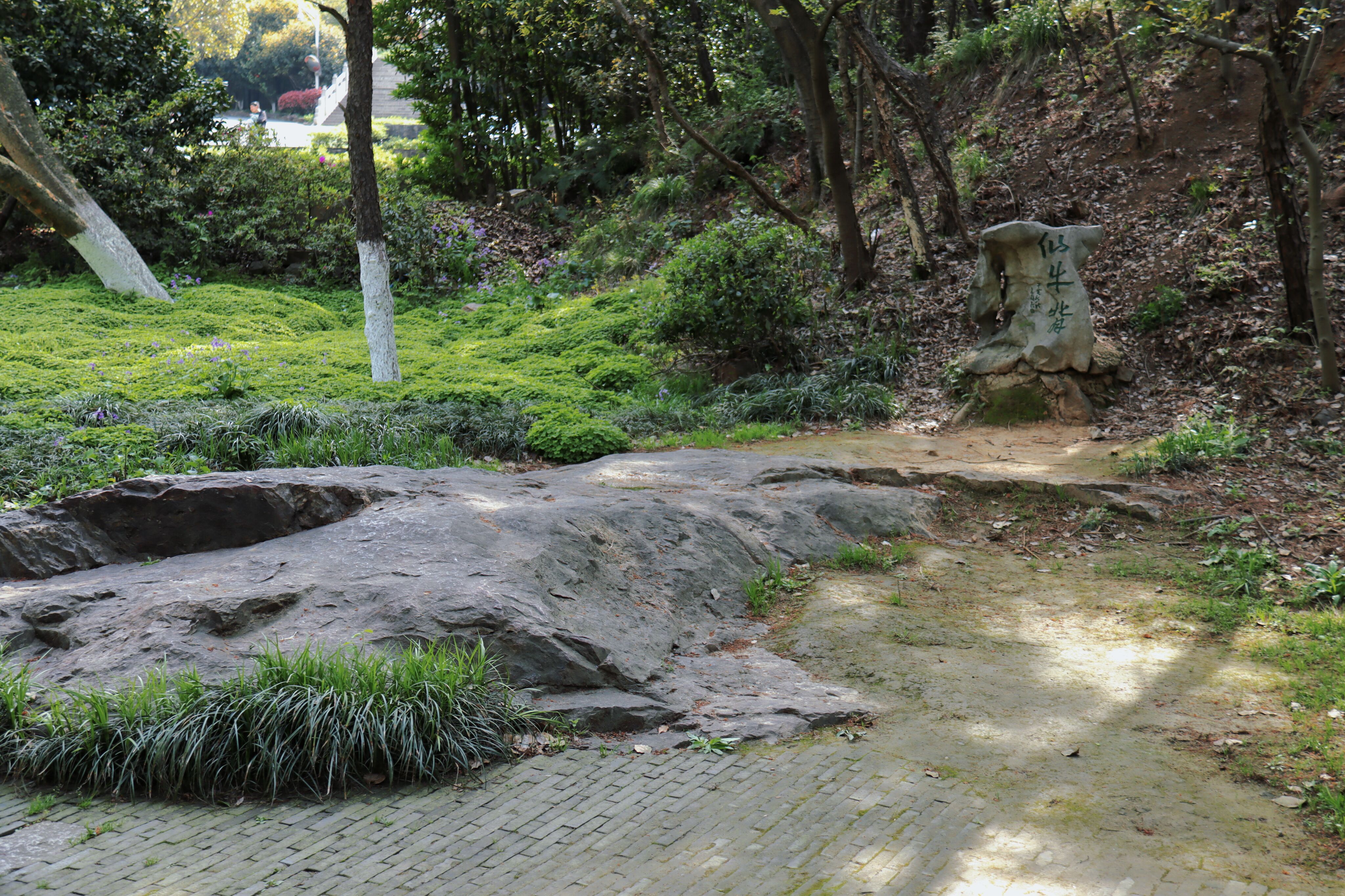 相传乃道教始祖老子坐骑青牛所化。此石浮出地面30公分左右,呈南北走向,前窄后宽,酷似脊背隆起、体态丰腴的前半段牛身。昔时还有牛角和胯骨,因采石毁去。